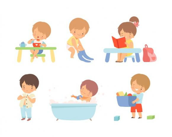 * dans l'apprentissage des gestes de la vie quotidienne (habillage, toilette, prise des repas, ...),